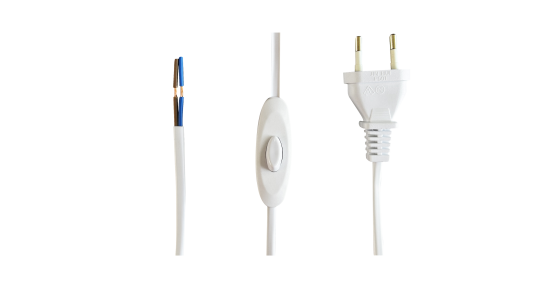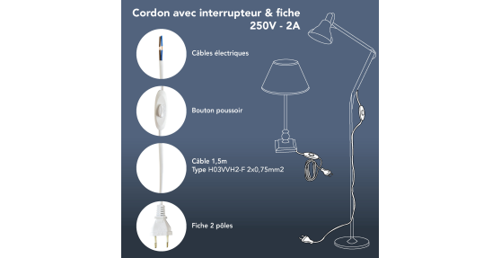 Cordon électrique blanc avec interrupteur et fiche 2 pôles L.1M50