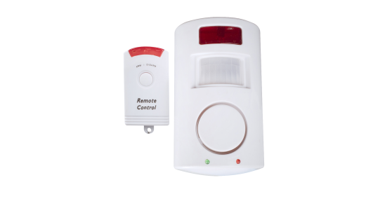 Composition du lot : Alarme avec détecteur de mouvement + 2 télécommandes