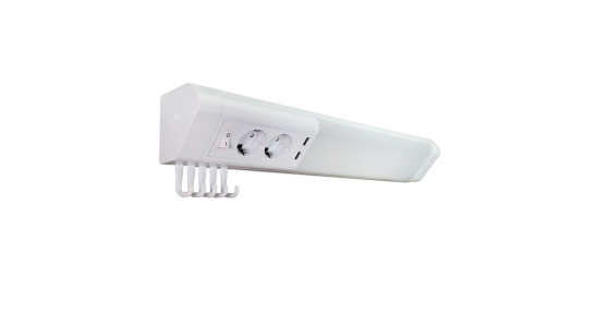 Votre luminaire possède une ou des prises pour brancher facilement d'autres appareils (ustensiles de cuisine, rasoir). Il permet d'optimiser les petits espaces qui contiennent peu de prises électriques.