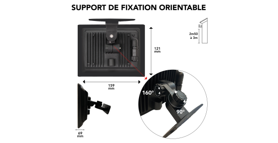 Dirigez la lumière de votre projecteur selon vos besoins grâce à son support de fixation orientable