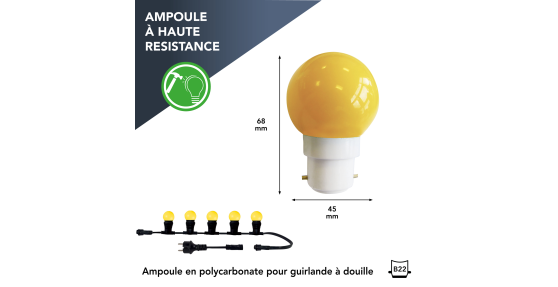 Coloris ampoule (multicolore opaque, translucide?) : Jaune opaque