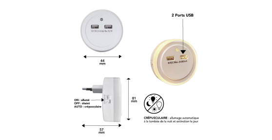 Allumage automatique à la tombée de la nuit et extinction au lever du jour. Pratique pour une utilisation dans une chambre ou un couloir en repérage lumineux ou encore pour simuler une présence durant votre absence.