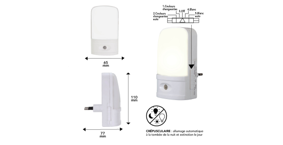 Allumage automatique à la tombée de la nuit et extinction au lever du jour. Pratique pour une utilisation dans une chambre ou un couloir en repérage lumineux ou encore pour simuler une présence durant votre absence.