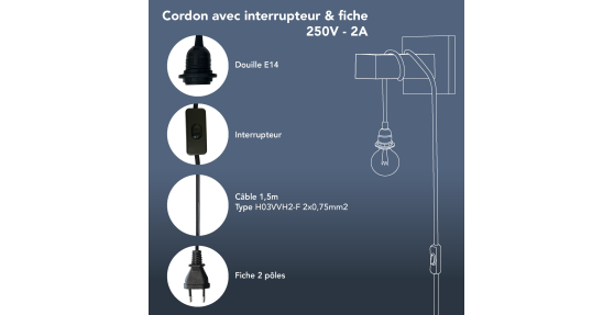 Wattage maxi ampoule autorisé : 60
