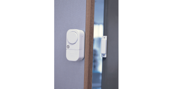 Composition du lot : 3 alarmes, 3 contacts magnétiques et 2 étiquettes de dissuasion