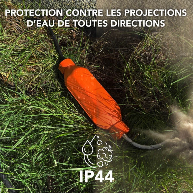 Ce boîtier de protection de prises électriques sécurise une connexion de rallonge et évite les débranchements accidentels. Il répond au problème fréquent des prises exposées aux chocs, à la poussière ou aux éclaboussures, notamment quand un appareil doit rester branché dehors ou dans un garage. Son plastique robuste et sa couleur orange bien visible facilitent le repérage. Vous gardez une connexion plus propre, mieux maintenue et plus sûre au fil des usages.