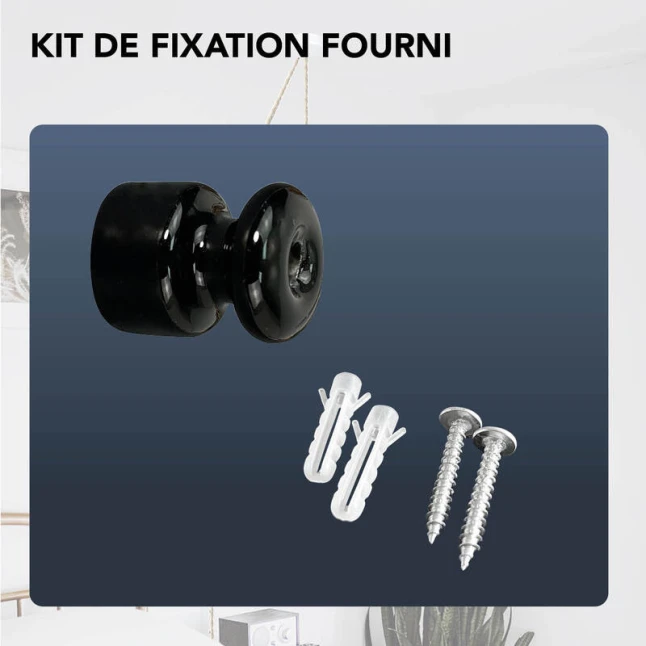 Ce passe-câble en céramique noire apporte une sortie de câble nette au plafond ou au mur, idéale pour un luminaire suspendu. Il guide le fil et protège la gaine au passage, pour éviter l’usure due aux frottements et aux arêtes. Sa finition noire sobre s’intègre facilement dans un décor moderne comme plus classique. Un accessoire simple qui répond au pain point le plus courant : un câble qui s’abîme ou une sortie de fil peu soignée.