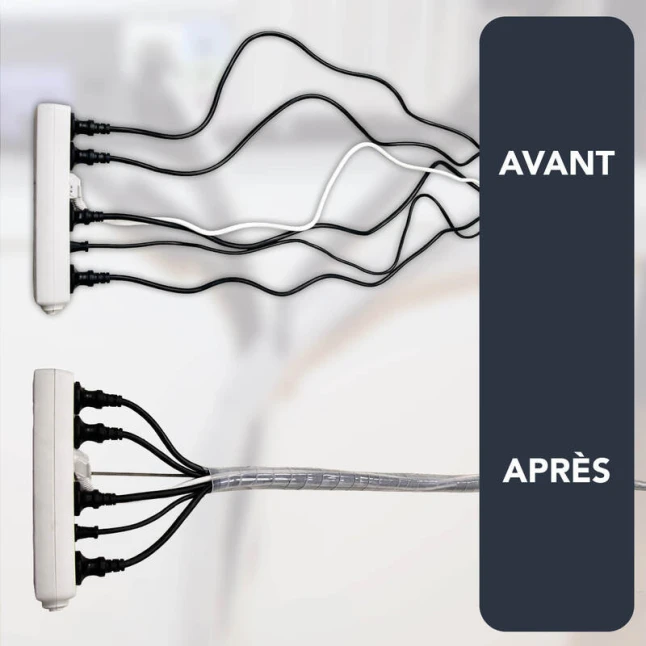 Grâce à sa couleur incolore, cette gaine cache-câbles reste discrète et s’intègre dans la plupart des environnements, sans attirer l’attention. Elle permet de garder les cordons alignés et mieux protégés des frottements légers du quotidien. Pour gagner du temps lors d’un changement d’appareil ou d’un contrôle visuel, la gaine cache-fil transparente améliore l’organisation et réduit les risques d’oubli de câble. Une solution simple pour un rangement de fils durable.