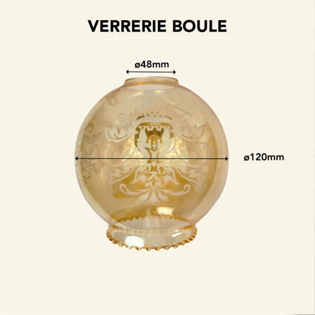 Ce globe en verre satiné ambré et gravé est pensé pour remplacer une verrerie abîmée ou pour moderniser un lustre ou une applique en conservant la structure existante. La forme boule apporte un rendu équilibré et propre, même sur un luminaire ancien. Le verre offre une bonne tenue dans le temps et un aspect plus qualitatif qu’un diffuseur plastique. Un choix pratique pour une remise en état rapide et soignée.
