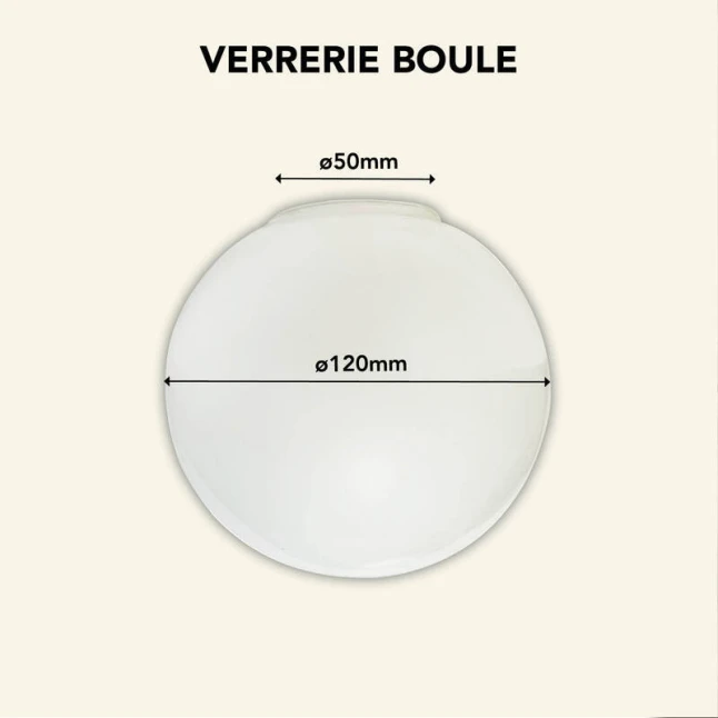 Avec son diamètre de 120 mm, cet abat-jour en verre opale correspond aux besoins courants de verrerie de luminaire de petit format. Il convient pour un lustre ou une applique prévus pour recevoir une verrerie sphérique. Le format globe aide à répartir la lumière tout autour, ce qui évite les zones d’ombre. Le verre est rigide et conçu pour durer, en usage normal.