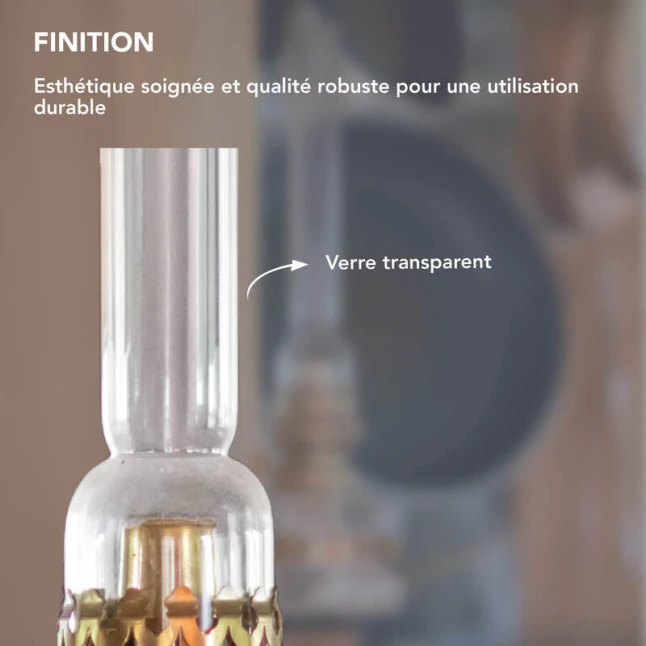 Fabriqué en verre, ce globe de lampe à pétrole offre une surface lisse qui se nettoie facilement et garde un rendu lumineux homogène. Sa teinte blanc translucide diffuse la lumière sans l’assombrir, tout en limitant visuellement les traces. Cette cheminée en verre est destinée à l’usage courant d’une lampe à pétrole et permet de retrouver un ensemble propre et cohérent. Si vous hésitiez entre plusieurs modèles, la combinaison 260 mm x 53 mm sécurise votre choix.