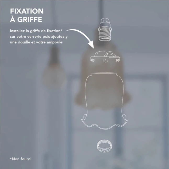 Ce globe tulipe en verre est prévu pour une fixation par griffe, un point à contrôler avant achat pour assurer un maintien correct. Le format diam. 113 mm est un repère concret pour confirmer l’adaptation à votre ancien abat-jour en verre et aux contraintes d’espace autour de l’ampoule. Le verre offre une bonne tenue dans le temps et se nettoie facilement. Pour des séries de luminaires, il permet d’obtenir un rendu homogène sur plusieurs points lumineux.