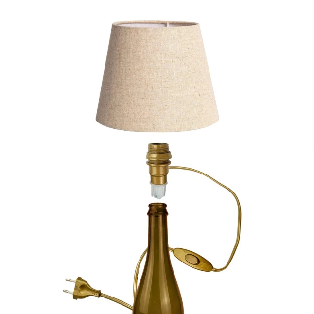 La douille demi-filetée intègre un passage de fil et une bague de fixation pour abat-jour, pour maintenir proprement un abat-jour compatible et éviter qu’il ne bouge au quotidien. Le corps en plastique est léger et adapté aux montages de luminaires décoratifs. Ce kit lampe bouteille répond au besoin fréquent d’un rendu soigné sans pièces à chercher séparément. Utile aussi quand il faut gagner du temps sur des séries de petites réalisations.