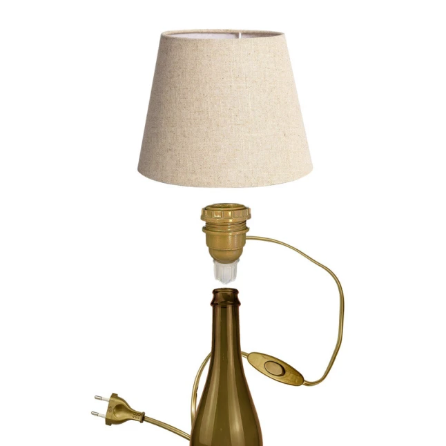 Description S'installe sur une bouteille ou un vase pour l’équiper et la transformer en lampe de table avec douille E27 et abat-jour. Idéal pour la modification, réparation ou création de luminaires.