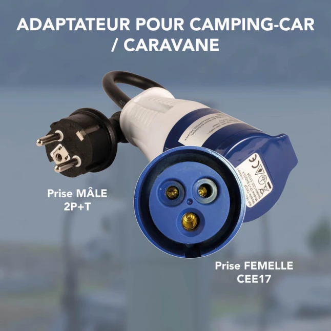 Cet adaptateur de camping permet de connecter facilement un appareil équipé d’une prise française 2P+T (comme un barbecue électrique, une bouilloire ou un chargeur) sur une borne de camping ou une prise de caravane. Il associe un côté au format CEE17 16 A et un côté au format français, pour résoudre le problème fréquent d’incompatibilité entre prises. Pratique aussi pour camping-car et mobile-home, sans changer vos équipements.