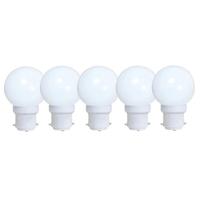 Pack de 5 ampoules sphériques LED 0,7W / 30LM plastique multicolores pour guirlande culot B22
