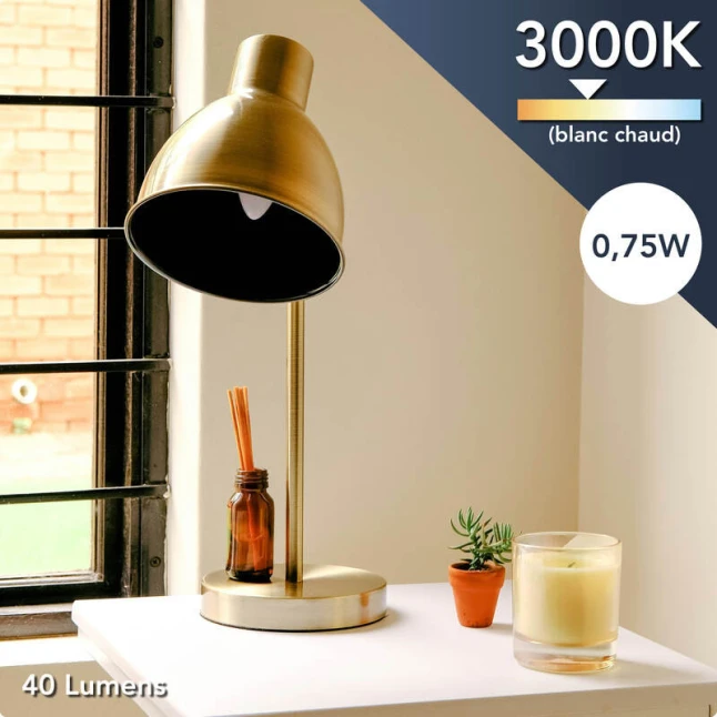 Ce lot de 2 ampoules LED est pensé pour les petits luminaires et veilleuses. Avec 40 lumens, la lumière reste discrète et évite l’éblouissement, un point souvent gênant la nuit. La teinte blanc chaud 3000K crée une ambiance apaisante dans une chambre, un couloir ou sur une lampe d’appoint. Le verre incolore laisse passer une lumière naturelle, sans teinte froide.
