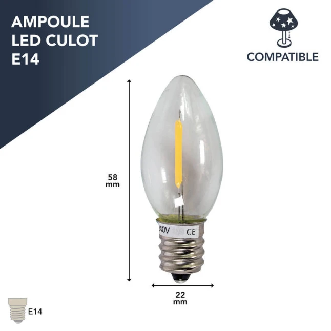 Le culot E14 (petit culot à vis) convient à de nombreuses veilleuses et lampes compactes. L’alimentation 240V correspond aux installations courantes, ce qui évite les doutes de compatibilité au moment du remplacement. Avec une puissance de seulement 0,75W, cette ampoule LED E14 est adaptée à un usage prolongé, tout en limitant la consommation électrique. C’est une solution pratique quand une veilleuse reste allumée longtemps.