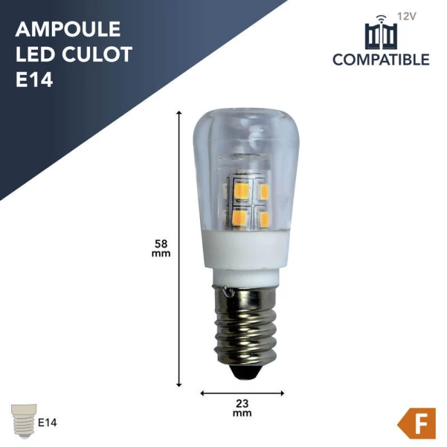 Cette ampoule LED est pensée pour les portails électriques équipés d’un clignotant. Elle fonctionne en très basse tension 12V et se raccorde sur une alimentation avec transformateur 12V (non fourni), comme sur de nombreux automatismes. Le culot E14 facilite le remplacement lorsque l’ancienne lampe est en E14. Elle répond au problème fréquent d’une ampoule standard 230V incompatible, qui ne s’allume pas ou se détériore rapidement.