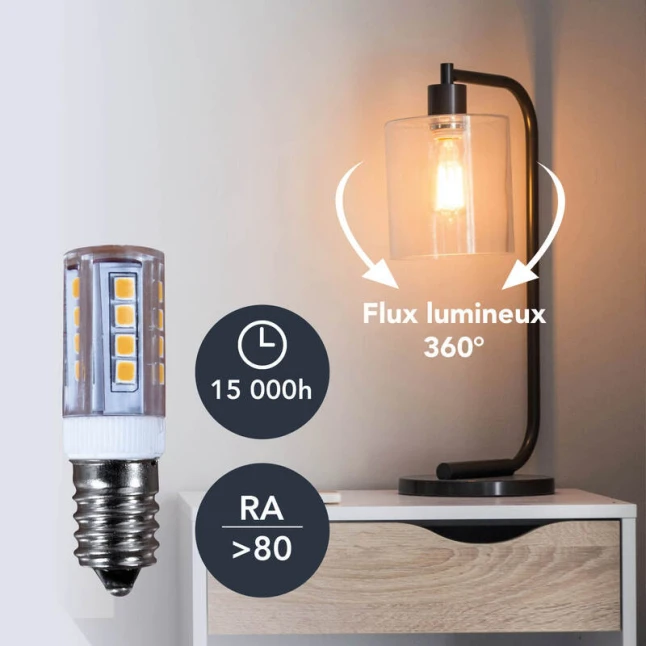 Le principal problème sur ce type d’éclairage, c’est l’espace : beaucoup d’ampoules E14 sont trop longues ou trop larges pour les douilles compactes. Ici, le format mini d’environ 16 x 54 mm facilite l’intégration dans les lampes de chevet compactes, veilleuses, petites appliques et luminaires décoratifs. Fonctionne en 240 V, pour une compatibilité simple avec les installations courantes. Vous évitez ainsi les retours liés à une ampoule qui ne rentre pas.