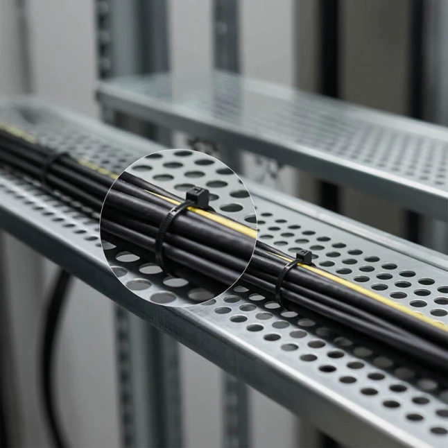 La denture extérieure antiglisse est pensée pour un maintien efficace tout en limitant les risques d’abîmer l’isolant au serrage. Cela répond au besoin fréquent d’attacher fermement sans marquer ni écraser les câbles. Ces colliers de serrage plastique noir conviennent en usage intérieur ou extérieur, pour des fixations simples sur supports, goulottes ou faisceaux. Le coloris noir se fond facilement dans la plupart des environnements techniques.