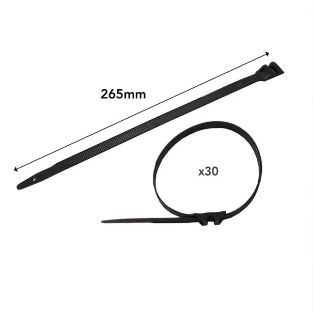 Ce lot de 30 colliers d’installation noirs permet de rassembler rapidement des câbles qui traînent, de sécuriser un faisceau ou de maintenir une gaine en place. Le format long 265 x 9 mm offre une bonne portée pour des regroupements plus volumineux, sans multiplier les attaches. La couleur noire reste discrète dans un coffret, le long d’un support ou sur une structure visible. Solution simple pour rangement et finition nette.