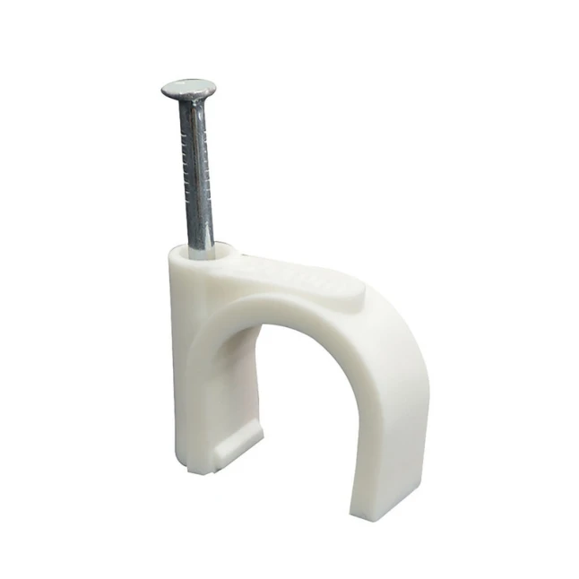 Ces attaches câbles rondes à clouer permettent de maintenir un câble ou une gaine au mur de façon nette et stable. Elles répondent au problème des fils qui pendent, se déplacent ou s’emmêlent, en gardant le passage bien en place le long d’une plinthe, d’un montant ou d’un angle. La finition blanc discret se fond facilement sur des supports clairs et laisse un rendu visuel plus propre autour des prises et luminaires.