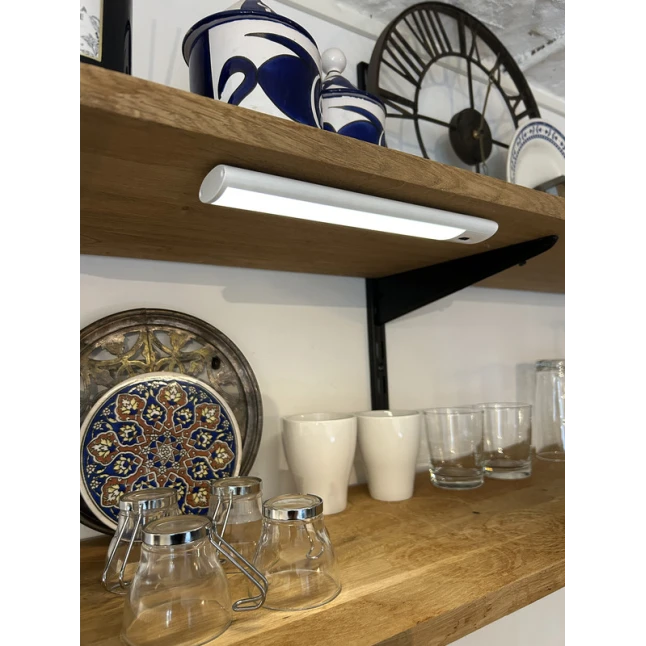 Cette réglette LED blanche de 24 cm apporte une lumière pratique là où il en manque souvent : sous un meuble de cuisine, dans une vitrine, sous une étagère ou au fond d’un placard. Son format fin et sa finition métal s’intègrent proprement, sans encombrer. Elle répond au problème des recoins mal éclairés, tout en restant facile à placer et à déplacer selon vos besoins, pour un éclairage localisé et propre.