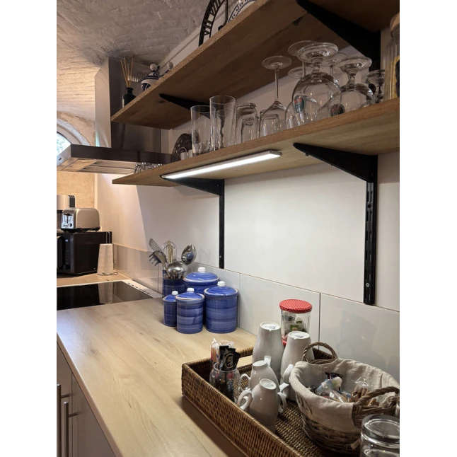 L’interrupteur infrarouge facilite l’allumage et l’extinction par passage de la main, pratique quand on a les doigts humides ou occupés. Le mode On/Off/Auto s’adapte aux habitudes, et l’intensité variable permet de passer d’une ambiance tamisée à un éclairage plus franc. Les supports adhésifs aimantés apportent une fixation propre et un retrait rapide, apprécié pour les ajustements et les interventions fréquentes.