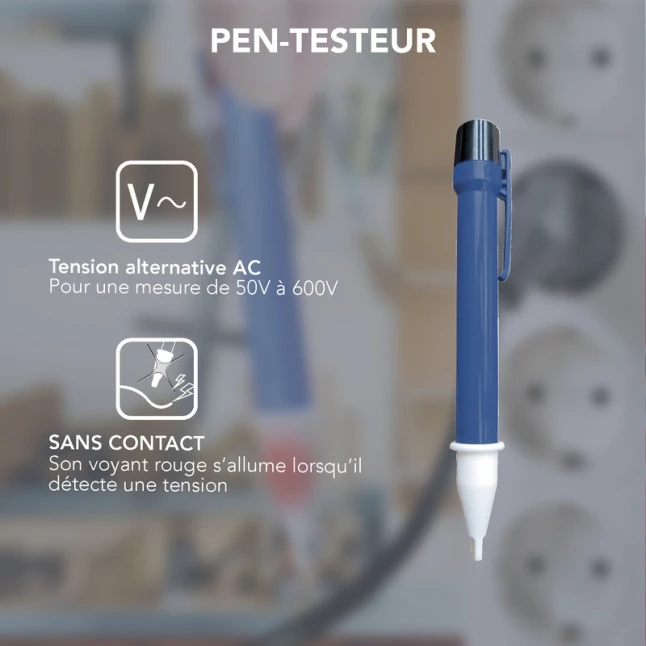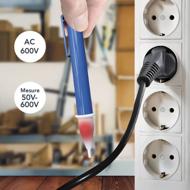 Ce détecteur de tension sans contact aide à savoir en quelques secondes si un conducteur est sous tension, sans toucher le cuivre ni dénuder. Le voyant rouge s’allume dès qu’une tension alternative est détectée, pratique quand on veut lever un doute avant de manipuler un câble, une prise ou un luminaire. Le format pen testeur se glisse facilement dans une poche pour des contrôles rapides sur chantier comme à la maison.