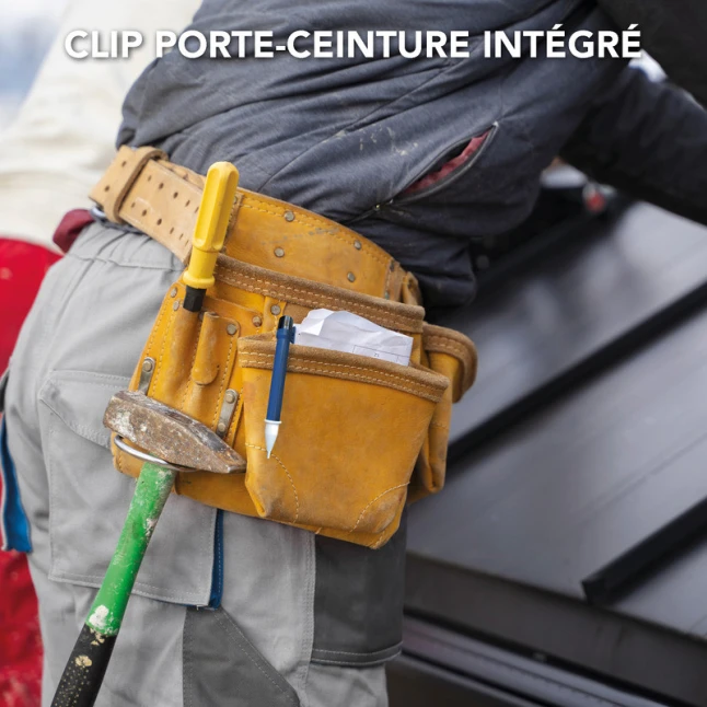 Sa petite taille et sa forme stylo offrent une prise en main simple, même dans un tableau ou un boîtier étroit. Le clip porte-ceinture intégré permet de l’avoir toujours à portée, sans le poser partout. La finition bleue est facile à repérer dans une caisse à outils. L’appareil fonctionne avec 2 piles AAA fournies, ce qui évite l’achat séparé et permet de l’utiliser immédiatement.