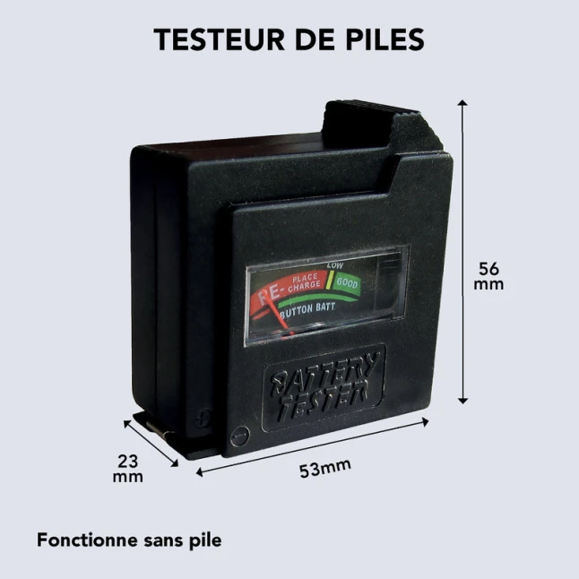 Ce testeur de piles analogique permet de savoir en quelques secondes si une pile est encore utilisable ou déjà trop faible. Il répond au problème courant des appareils qui semblent “en panne” alors que la pile est simplement déchargée. L’aiguille indique clairement le niveau de charge, ce qui évite de jeter des piles encore bonnes et limite les remplacements inutiles. Son format compact se glisse facilement dans une caisse à outils ou un tiroir.