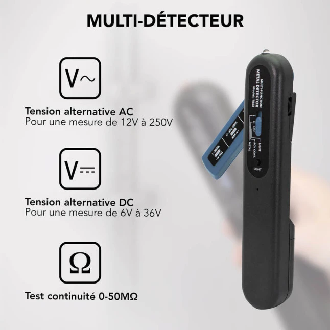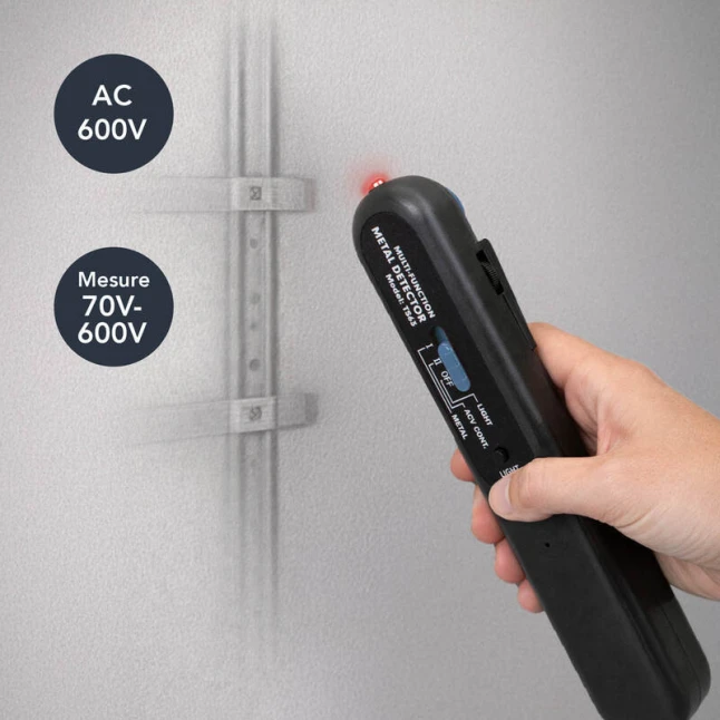 En plus de la détection dans les parois, l’appareil sert de testeur de tension jusqu’à 600 V max pour des contrôles simples et rapides. Il aide à localiser une coupure de courant dans un câble, à vérifier l’état de fusibles et de composants électroniques, et à confirmer si un appareil est bien raccordé à la terre. Pratique pour gagner du temps lors d’un diagnostic, sans exclure les usages ponctuels à la maison.