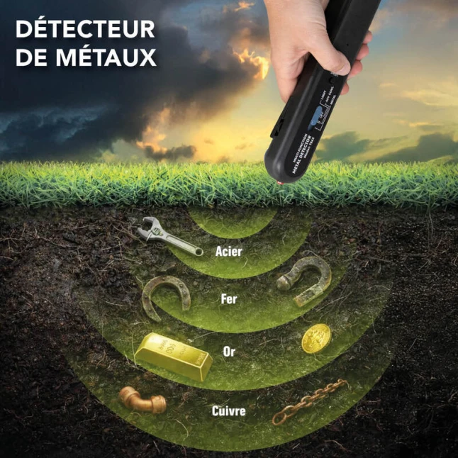 Ce multi-détecteur aide à repérer ce qui se cache derrière un mur avant de percer ou de fixer. Il détecte le métal (tuyaux, clous, barres) et signale la présence de courant pour localiser des câbles sous tension. C’est la réponse au doute le plus fréquent en bricolage : “Y a-t-il un fil ou un tube à cet endroit ?”. En réduisant le risque de coupure de câble ou de contact accidentel, vos travaux restent plus sûrs et plus propres.