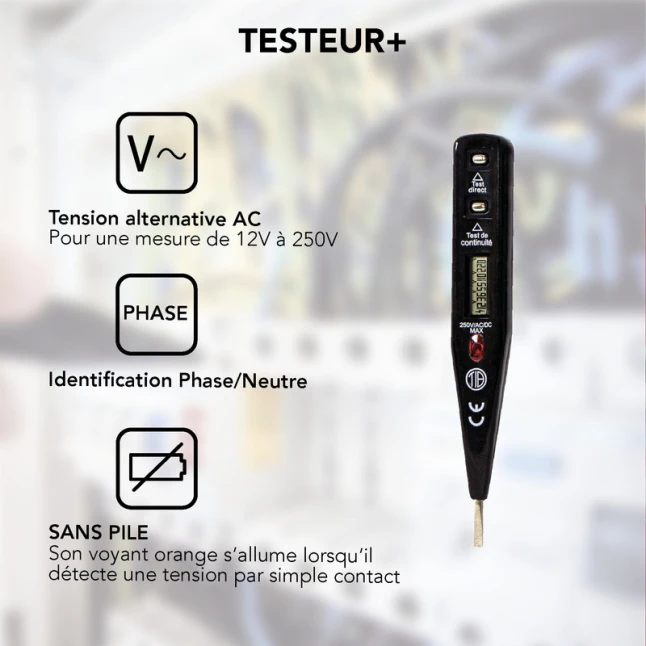 En un seul outil, vous disposez d’un testeur de tension AC/DC, d’un détecteur de continuité et d’une identification phase/neutre. Cela aide à lever un doute courant lors d’un contrôle de câblage : savoir si une borne est bien alimentée et reconnaître le conducteur actif. La mesure 12–220 V convient pour de nombreux points de contrôle du quotidien. Pour les utilisations répétées, l’absence de pile évite les pannes imprévues et limite l’entretien.