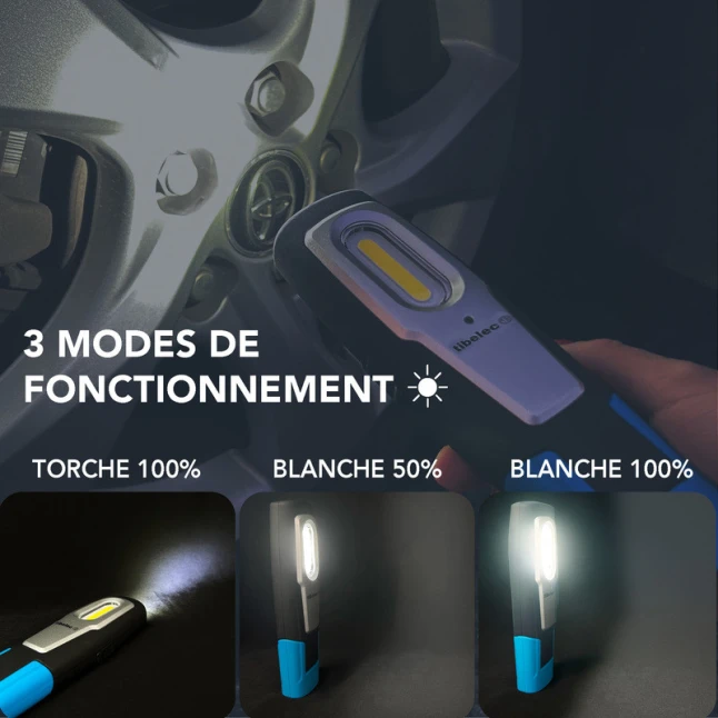 Le principal point de blocage en bricolage est de devoir tenir la lampe d’une main. Ici, le support aimanté orientable aide à fixer la lampe sur une surface métallique et à diriger la lumière sans effort. Le crochet intégré est utile pour suspendre l’éclairage quand il n’y a pas de support. Vous gagnez en précision, que ce soit pour un dépannage rapide, une inspection ou une intervention plus longue.