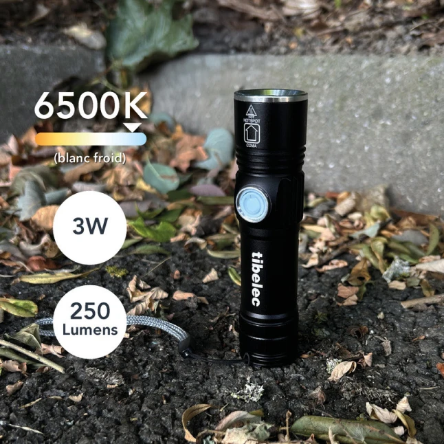 Cette mini lampe torche LED 3 W délivre 250 lumens pour éclairer clairement une zone de travail, un coffre de voiture ou un passage sombre. Le faisceau réglable permet d’élargir la lumière pour voir autour de vous ou de la concentrer pour inspecter un détail. Vous évitez ainsi le problème courant des lampes trop faibles ou trop dispersées, surtout en bricolage, en extérieur ou lors d’une coupure.
