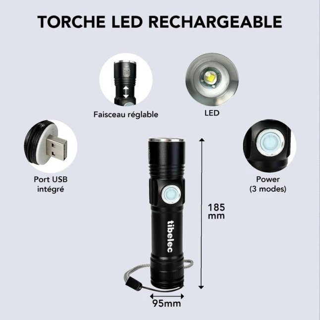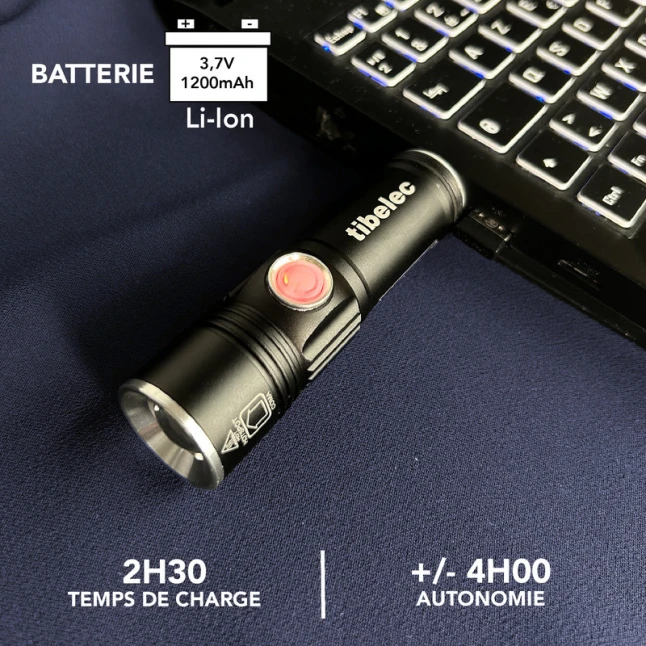 Grâce à sa batterie rechargeable, cette torche rechargeable USB se recharge facilement avec le câble USB inclus. Vous pouvez l’alimenter depuis un ordinateur, une batterie externe ou un chargeur USB standard, sans dépendre de piles jetables. Son format mini et léger se transporte facilement dans une poche, un sac ou une boîte à gants. C’est une solution pratique pour garder une lampe portative toujours prête, à la maison comme en déplacement.