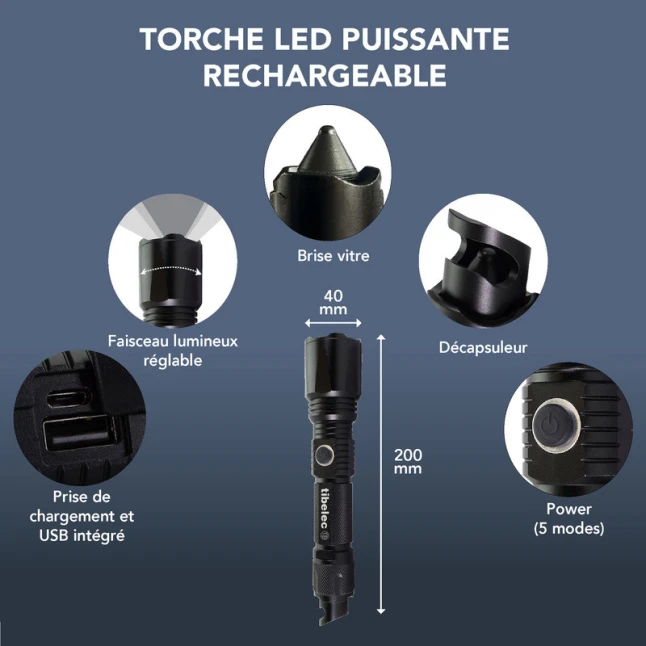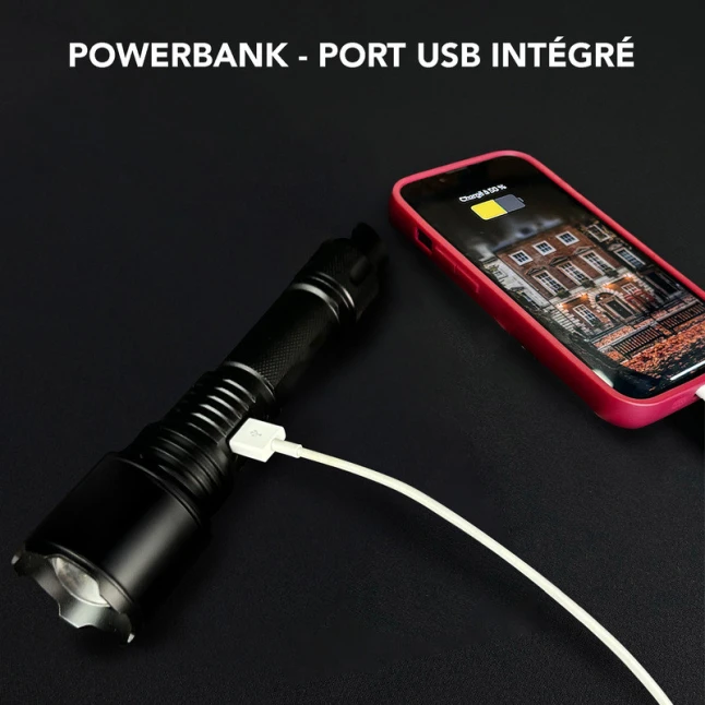 Fini les piles à remplacer : c’est une lampe torche LED rechargeable USB, fournie avec son câble et une station de chargement pour la garder prête à l’emploi. Elle peut aussi servir de power bank pour dépanner un téléphone ou un accessoire USB quand une prise manque. Ce format convient aussi bien aux activités de loisirs, camping, bateau, qu’aux contrôles rapides lors de travaux de bricolage.