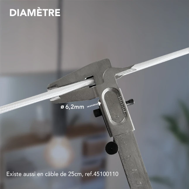 Le diamètre de 6,2 mm correspond à un format courant pour câble rond tissu, ce qui facilite la compatibilité avec de nombreux serre-câbles, passe-fils et éléments de suspension conçus pour ce type de cordon. Cette précision évite les doutes au moment de choisir entre plusieurs diamètres. Pour les usages exigeants, le diamètre régulier et la longueur standard simplifient la préparation et limitent les chutes, tout en restant accessible au grand public.