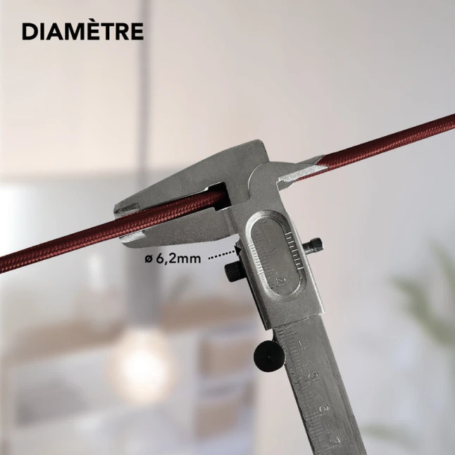 Avec 3 m de longueur, ce cordon textile pour luminaire convient quand la prise est éloignée ou pour des descentes de plafond plus longues. Son format rond facilite le passage dans les accessoires courants, et son diamètre 6,2 mm est pratique pour viser un assemblage net avec de nombreuses douilles, serre-câbles et pavillons prévus pour des câbles ronds. Pour lever le doute, vérifiez simplement que vos pièces acceptent un câble rond de 6,2 mm.