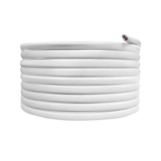 La référence H03VVH2-F en 2x0,75 mm² correspond à un câble souple à deux conducteurs (phase et neutre), prévu pour les usages légers comme l’éclairage. La gaine plastique blanche s’accorde facilement avec des luminaires clairs et reste agréable à manipuler. Si votre appareil exige une terre, ce câble 2 fils ne convient pas : il est conçu pour les montages sans conducteur de protection.