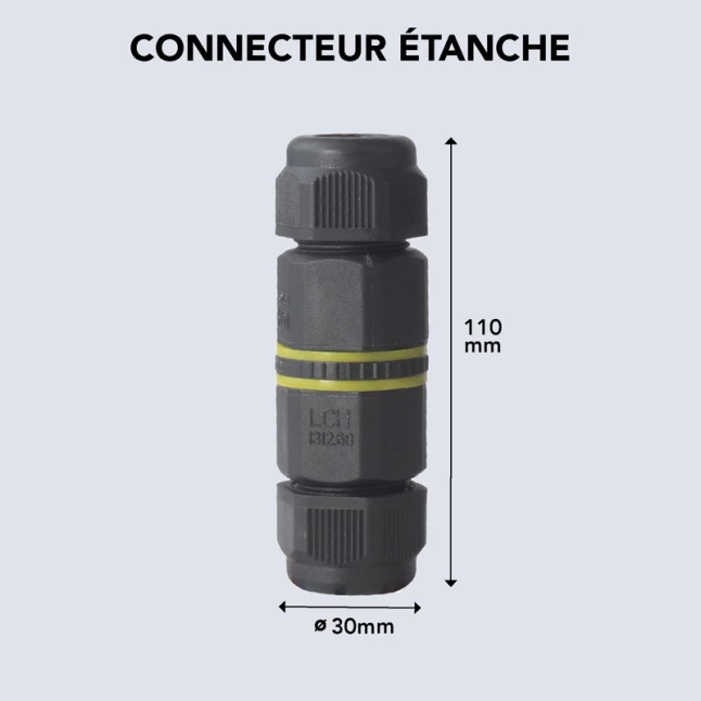 Le corps du connecteur étanche est pensé pour résister aux conditions difficiles : humidité, projections, variations météo et manipulations répétées. L’IP68, avec protection en immersion permanente à plus d’1 m, apporte une marge de sécurité quand la jonction ne peut pas rester parfaitement au sec. Pour les chantiers récurrents, ce type de connecteur 3 pôles fait gagner du temps lors des interventions et limite les reprises dues à l’oxydation.
