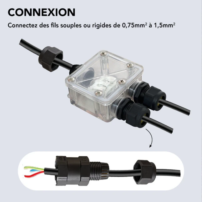 Son aspect transparent et incolore permet un contrôle visuel rapide des connexions, utile pour vérifier l’état des conducteurs sans ouvrir inutilement. Ce connecteur étanche limite les infiltrations responsables de faux contacts et de pannes répétées. Pour un usage régulier, il apporte une solution durable et propre pour protéger les jonctions, tout en restant simple à intégrer dans une ligne existante. Le format soigné aide aussi à gagner du temps lors des interventions.