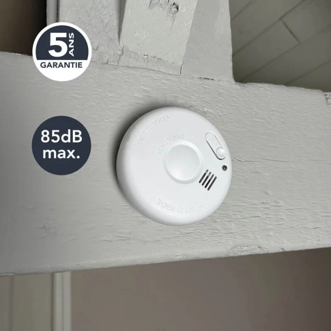 Un voyant de fonctionnement permet de vérifier d’un coup d’œil que l’appareil est actif, ce qui rassure au quotidien. Le bouton test aide à confirmer le bon état de l’alarme sonore 85 dB, utile pour les contrôles réguliers et pour suivre plusieurs équipements sur un même site. La garantie 5 ans apporte une sécurité supplémentaire sur la durée, en complément de la conception simple et robuste du détecteur de fumée photoélectrique.