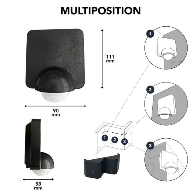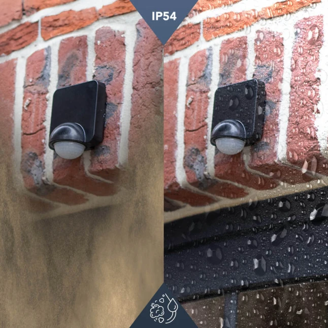 Sa conception multi-position permet une fixation murale ou en angle grâce au support amovible, en intérieur comme en extérieur. L’indice de protection IP54 aide à résister à la poussière et aux projections d’eau, utile près d’une porte, d’une façade ou sous un abri. Le boîtier plastique noir reste discret. La garantie 5 ans apporte une réassurance, y compris pour des usages répétés et des interventions de maintenance espacées.