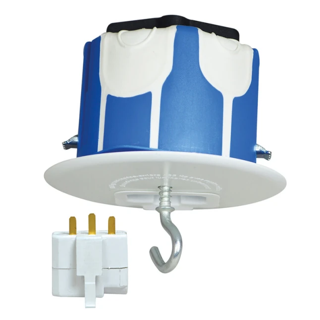 Cette boîte d’encastrement DCL pour plafond est conçue pour monter et raccorder un luminaire à suspendre avec une connexion normalisée. Elle s’intègre dans une boîte de centre DCL Ø65 mm et répond aux exigences de la NF C 15-100, utile quand on veut une installation conforme sans se poser de questions. Sa couleur bleue permet de l’identifier facilement dans un plafond. La solution est adaptée aux petits chantiers comme aux interventions régulières.