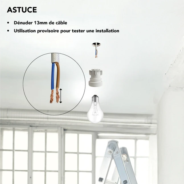 La connexion rapide par clip facilite le raccordement et limite les manipulations longues quand on doit tester plusieurs points. Le support d’ampoule E27 accepte les formats courants à culot E27, y compris la plupart des ampoules LED E27 et incandescentes E27, pour s’adapter aux essais du quotidien. La douille en plastique blanc reste légère et pratique à transporter. Pour lever les doutes, le culot E27 correspond au standard le plus répandu.