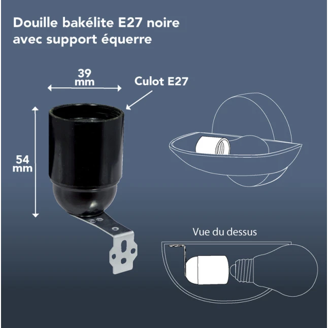 Le corps en bakélite est pensé pour un usage durable et stable dans le temps. Ce porte-ampoule E27 accepte une ampoule à vis jusqu’à 60 W maximum, ce qui aide à éviter les erreurs de puissance. Son format compact avec une dimension annoncée de 3,9 cm facilite l’intégration dans des espaces réduits, notamment dans un globe ou un hublot. La douille E27 lisse limite les aspérités et se nettoie facilement.