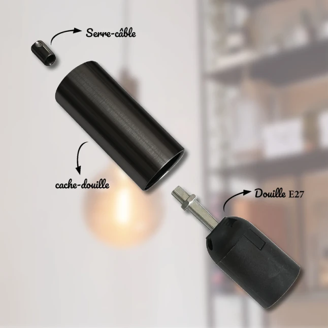 Conçu en métal, cet ensemble apporte une tenue mécanique appréciée pour un usage quotidien et une finition nette. Le cache-douille cylindrique recouvre proprement la zone de raccordement et améliore l’aspect final d’un montage apparent. Sa couleur noir chromé s’accorde facilement avec des câbles textiles, des suspensions simples et des créations de style industriel. Le choix du métal limite aussi les marques et l’usure visibles avec le temps.